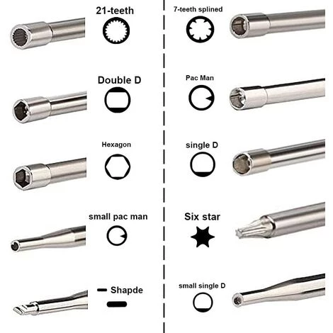 - EIN MUSS-TOOL-SET: 10 verschiedene Vergaser-Einstellwerkzeuge, die Ihre 2-Takt-Motoren bei guter Leistung halten, einschließlich Pac Man, Small Head Pac Man, Single D, Small Head Single D, Double D, Hexagon, 21 Zähne Splined (aufgerüstet von 7 Zähne Splined) usw., verwendet für die meisten 2-Takt-Vergasermotoren. Unentbehrlich für diejenigen, die persönliche Ausrüstung und Sachen für Freunde und Familie warten.