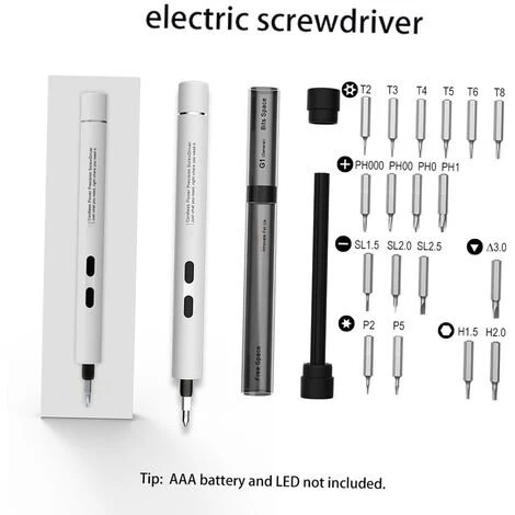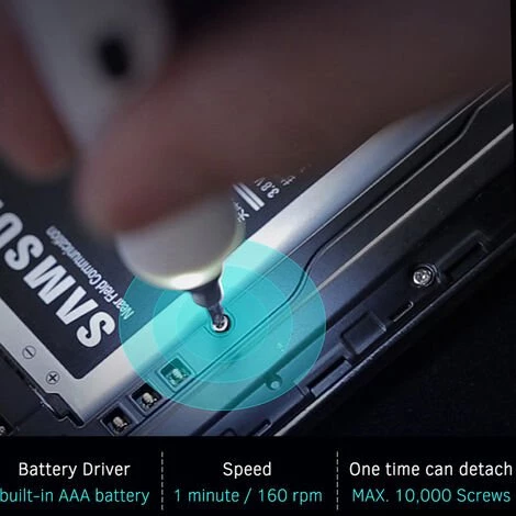 Angetrieben von zwei eingebauten austauschbaren AAA-Batterien (das Paket ohne Batterie), mit Hochgeschwindigkeitsrotation für einfaches Installieren und Lösen der Schraube ohne Beschädigung.
