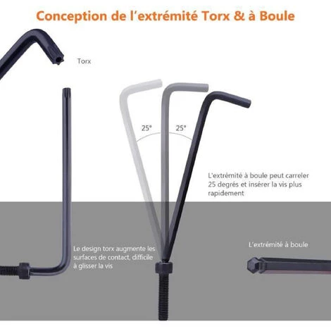 5. Entworfen mit einem Kugelende für den Zugang zu Innensechskantschrauben mit einem Eintrittswinkel von bis zu 25 Grad.