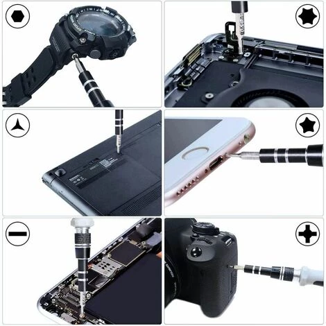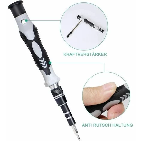 ?Verschiedene Anwendungen für den täglichen Bedarf? Präzisions-Schraubendreher-Werkzeugsatz, weit verbreitet für die Wartung und Reparatur von Haushaltsgeräten für Computer, Uhren, Brillen, Elektronik usw. ?Trinkbar und professionell? Dieses Schraubendreher-Set wird mit einer Aufbewahrungsbox und einer Magnetplatte geliefert. Der Platz, die Position und die Größe des Zubehörs sind richtig gestaltet, was für Ihre Arbeit bequem ist. ?Nützliches Heimwerkerwerkzeug?Schraubendreher-Set, erhältlich in weichen und harten Verlängerungen für enge Ecken. Es ist außerdem mit antistatischen Clips und rutschfesten Silikongriffen für alle Gelegenheiten ausgestattet. ?Perfekt für die Verarbeitung?Der Chrom-Vanadium-Schraubendreherkopf mit einer Härte von 55-60 HRC sorgt für gute Qualität und einfache Handhabung. Mit diesen Tools können Sie Uhren und Telefone schnell und einfach reparieren/modifizieren. Sie können Familie, Freunden als praktisches und anständiges Geschenk gegeben werden