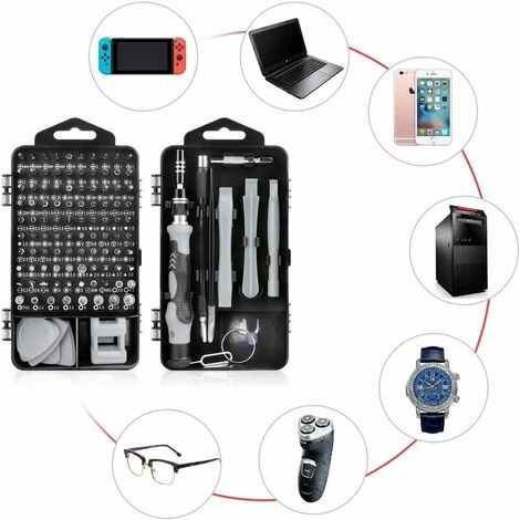 115-in-1-Präzisions-Schraubendreher-Set: Das 115-in-1-Schraubendreher-Set kann zur Reparatur gängiger Haushaltsgeräte wie Fernseher, Klimaanlagen, Ventilatoren, Kühlschränke, Autos usw. verwendet werden. Es ist auch für die Demontage und Wartung von Mobiltelefonen, Digitalkameras, Uhren, Brillen und Laptop-Spielkonsolen erforderlich. Umfassendes Sortiment an CR-V-Stahl-Schraubendreher-Bits: 98 Schraubendreher-Bits sind aus hochwertigem Chrom-Vanadium-Stahl gefertigt, robuster und langlebiger. Die Härte des Chrom-Vanadium-Kopfes beträgt 55-60 HRC, was einen präzisen und stabilen Langzeiteinsatz ermöglicht. Einschraub-Magnethalter: Magnetische Präzisionsschraubendreher können den Bit einfach fixieren und die Schraube entfernen, was Zeit und Mühe spart. Das Reparatur-Schraubendreher-Kit wird mit einem magnetischen Speicherpad geliefert, das einfach und effizient entfernt und montiert werden kann, ohne sich Gedanken über den Verlust kleiner präziser Schrauben oder eine unsachgemäße Installation machen zu müssen. Professionelle Werkzeugbox: Magnetischer Schraubendreher, ausgestattet mit einer professionellen PP-Aufbewahrungsbox, leicht zu transportieren und aufzubewahren und stoßfest. Angemessenes Design und Trennung, stabile Positionierung, damit Teile nicht leicht herunterfallen oder verloren gehen. Es gibt auch einen ergonomischen rutschfesten Griff mit einem antistatischen Clip, mit dem Sie bequem und bequem arbeiten können. Hochwertiger After-Sales-Service: Das 115 in 1 Präzisions-Schraubendreher-Set beinhaltet 98 Schraubendreher und 17 Demontageteile, Schraubendrehergriffe, Zangen, Hebelsauger aus Kunststoff, Magnete, Magnetpads und weiteres Zubehör. Alle Werkzeuge, die Sie zum Arbeiten benötigen, können Ihre unterschiedlichen Anforderungen erfüllen. Wenn Sie Fragen zum Produkt haben, werden wir diese für Sie lösen.