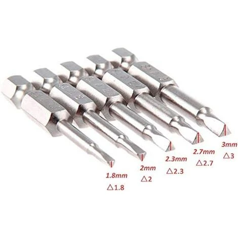 Größe (Höhe des Dreiecks): Δ1,8, Δ2,0, Δ2,3, Δ2,7, Δ3,0; Sechskantschaft: 6,35 mm (1/4 Zoll); Gesamtlänge: 50 mm/2 Zoll