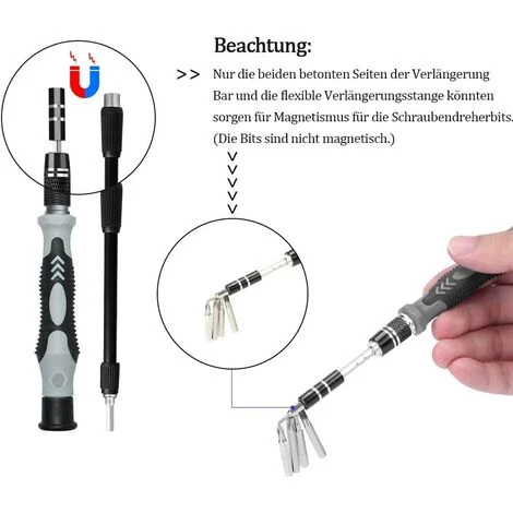【Material】 Der Chrom-Vanadium-Kopf hat eine Härte von 55-60 HRC. Der Schraubendreherkopf ist magnetisch, mit einer guten Garantie für Qualität und Bedienbarkeit.