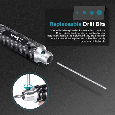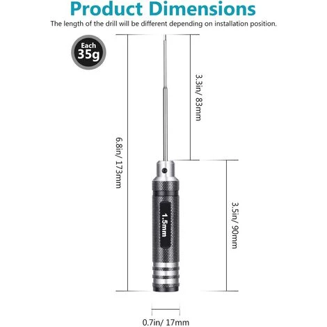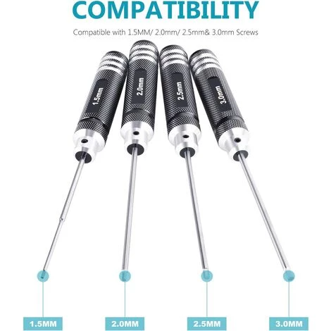 Das Set beinhaltet 2,5 mm, 2.0 mm, 1,5 mm, 3,0 mm Schraubenschlüssel.