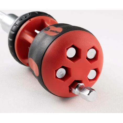 Der Mini-Ratschenschraubendreher von TOOLCRAFT ist ein 7-in-1-Multitalent. Der weiche Werkzeuggriff sorgt für besonders viel Kraftmoment. Im Griff werden die 6 Bits mit einer Länge von 38 mm aufbewahrt. Geeignet für technische Wartungsarbeiten und Fahrzeug- sowie