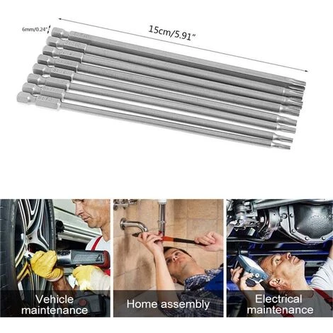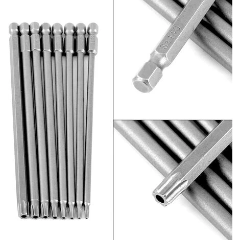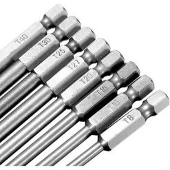 Länge: 150 mm / 6 Zoll. Schneiden: T8, T10, T15, T20, T25, T27, T30, T40. Stangentyp: 6,35 mm (1/4) Sechskant.