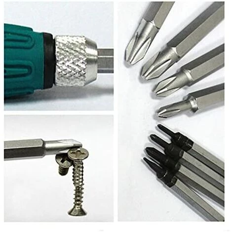 Hohe Qualität: Alle Bits bestehen aus Chrom-Vanadium-Stahl und sind speziell wärmebehandelt, langlebig und praktisch, lange Lebensdauer. Der Griff ist aus Gummi, langlebig, rutschfest, kratzfest, auf der Grundlage menschlicher Mechanik entwickelt, was die Bedienung effizienter und bequemer macht