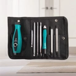 Was Sie erhalten: Schraubendreher-Bit * 8 + Schraubendrehergriff * 2 + Canvas-Tasche * 1 (Das Kit ist ein handtellergroßes faltbares Canvas-Paket).