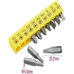 Inklusive 3 Schlitzschraubendreherbits, 4 Kreuzschlitzschraubendrehern und 3 Schraubendrehern