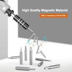 Hochwertiges magnetisches Material: Der Chrom-Vanadium-Schraubendreherkopf hat eine Härte von 55-60 HRC, und der Bitbereich kann auf Knopfdruck nach oben gedreht werden, um den Zugang zu erleichtern die Spitzen. Mit einer Memory-Foam-Matte können Sie kleine Schrauben leicht halten und müssen sich keine Sorgen um fehlende Schrauben bei der Demontage oder Montage machen, was Ihre Arbeit effizient macht. Langlebig und ausgestattet mit verschiedenen Kopfgrößen und umfangreichem Zubehör für Ihren täglichen Bedarf.