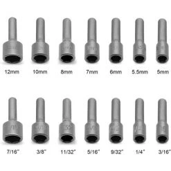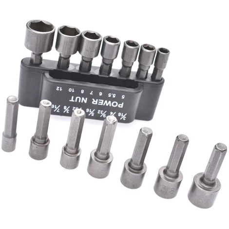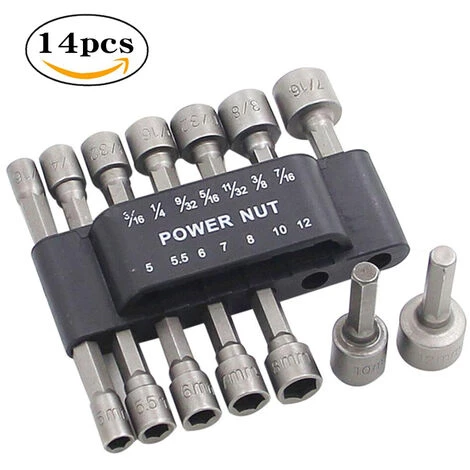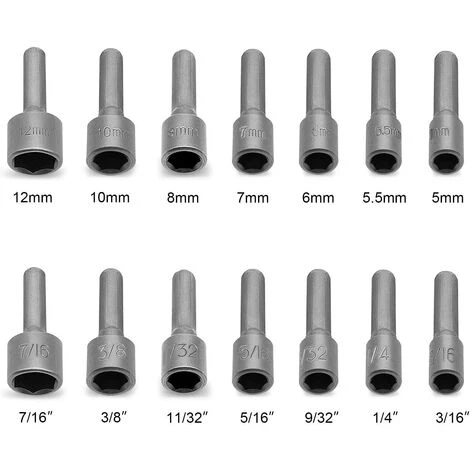 [Verschiedene Größen] Das Sechskantschraubendreher-Set enthält verschiedene Größen, um Ihren Anforderungen gerecht zu werden. Power-Mutter-Schraubendreher-Bits (SAE): 3/16, 1/4, 9/32, 5/16, 11/32, 3/8, 7/16 Zoll; Power-Mutter-Schraubendreher-Bits (metrisch): 5 mm, 5,5 mm, 6 mm, 7 mm, 8 mm, 10 mm, 12 mm.
