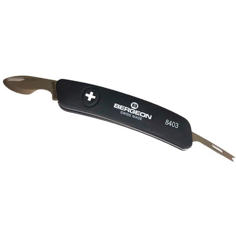 Uhrmachermesser mit integriertem Federstegwerkzeug.