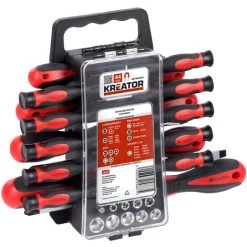 Die magnetische Spitze erleichtert das Handling beim Schrauben. Die Schraubendreher dienen zum Einziehen, Festziehen und Lockern von Holzschrauben, Eisenschrauben und Metallschrauben. Die Schraubenzieher besitzen gummierte rutschfeste Griffe mit Loch für Hängesysteme.