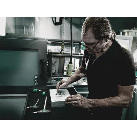 Querqriff-Schraubendreher: Die ideale Griffform ermöglicht die Übertragung besonders hoher Anzieh- und Lösemomente. Die ergonomische Form des Griffs füllt den Handballen gut aus, die Finger liegen sicher in den weich gerundeten Griffmulden. Die ganze Hand findet Kontakt zum Griff und Reibungsverluste zwischen Hand und Griff werden vermieden. Spezielle Oberflächenvergütung für hohen Korrosionsschutz und optimale Passgenauigkeit in der Schraube.