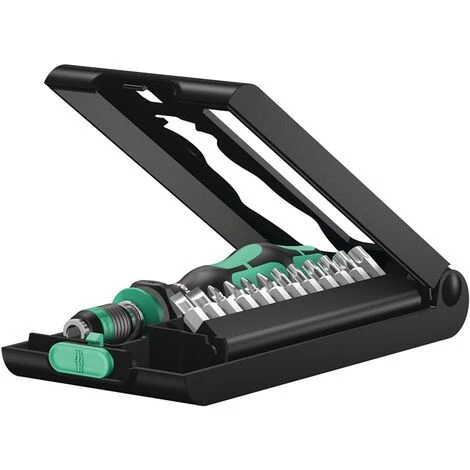 bestückt mit Bits zähhart, Mehrkomponenten-Kraftform-Griff und versenkbarer Bajonettklinge* mit Schnellwechselfutter (Rapidaptor Technologie) * kann entnommen und als Maschinenadapter eingesetzt werden Inhalt: 1 Kraftform-Handhalter 1 Bajonettklinge (100 mm) Bits für Schlitzschrauben je 1 St. Gr. 4,5 x 0,6 / 5,5 x 1,0 mm Bits für Schrauben mit Kreuzschlitz (PH) je 1 St. Gr. 1 u. 2 Bits für Schrauben mit Kreuzschlitz (PZD) je 1 St. Gr. 1 u. 2 Bits mit Bohrung für Schrauben mit Innen-TORX®-Profil (auch mit Sicherungsstift) je 1 St. Gr. T 10 / 15 / 20 / 25 / 30 / 40 Weitere technische Eigenschaften: · Antrieb: 1/4 “ · Verpackung: in Kunststoffbox · Antrieb mm: 6,3mm · Modell: 05056656001