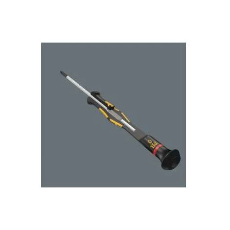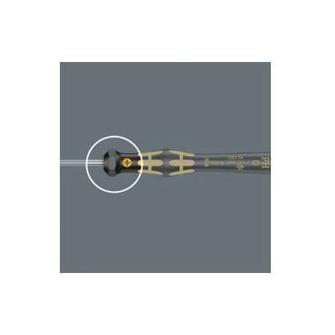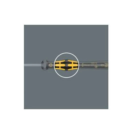 Kraftform Micro Schraubendreher für Innen-TORX®-SchraubenElektrostatisch sicheres Werkzeug durch Oberflächenwiderstand von Mehrkomponentiger Kraftform Micro Griff für schnelles und ergonomisches VerschraubenDie Wera Black Point-Spitze bietet Passgenauigkeit und optimierten KorrosionsschutzMit Werkzeugfinder Take it easy: Farbkennzeichnung nach Profilen und GrößenstempelungMit Abrollschutz und drehbarer Kappe für schnelles ZwirbelnElektrostatisch abgesicherter Micro Schraubendreher. Sicherer Schutz vor elektrostatischer Energie und damit verbundenen Schäden. Durch Abstützen der Hand auf der Drehkappe und durch die Schnelldrehzone unterhalb der Drehkappe ist blitzschnelles Zwirbeln möglich. Zeitintensives Umgreifen entfällt. Kraftzone mit integrierten Weichzonen sorgt für die Übertragung hoher Löse- und Anzugsmomente. Präzisionszone für den richtigen Drehwinkel bei Justierarbeiten. Die Black Point-Spitze bietet Passgenauigkeit und optimierten Korrosionsschutz. Take it easy Werkzeugfinder mit Farbkennzeichnung nach Profilen und Größenstempelung zum einfachen und schnellen Finden des benötigten Werkzeugs. | Eigenschaften: Gesamtlänge: 137 mm, Schaftlänge: 40 mm, Anwendung: Torx, Teilebezeichnung: 1567 ESD Micro TX 6 x 40 mm, Größe: T 6*, Ausführung: ohne Bohrung, Grifflänge: 97, Klingendurchmesser: 3, SB-Verpackt: Nein, Abtriebsform: Torx, Aufhängeloch: Nein, Griffmaterial: 2-Komponenten-Kunststoff, Isoliert nach DIN EN 60 900: Nein, Klinge durchgehend: Nein, Klingenform: rund, Klingenmaterial: Chrom-Vanadium-Molybdän-Stahl, Kugelkopf: Nein, Rostfrei: Nein, Schlagkappe: Nein, Seitenabtrieb: Nein, Veredelung Klinge: nicromatt, Veredelung Spitze: Black-Point, Vergütung Klinge: hochlegiert, Oberflächenausführung: nicromatt, Vergütung Abtriebsspitze: Black-Point, Ausführung Griff: ergonomisch geformt, Mit Abrollschutz: Ja, Griffdurchmesser: 17, Gewicht: 15, Abtriebsgröße: 6, Kappe drehbar: Ja, Griff: Längsgriff, VDE-geprüft: Nein, Norm (Abtriebsspitze): sonstige