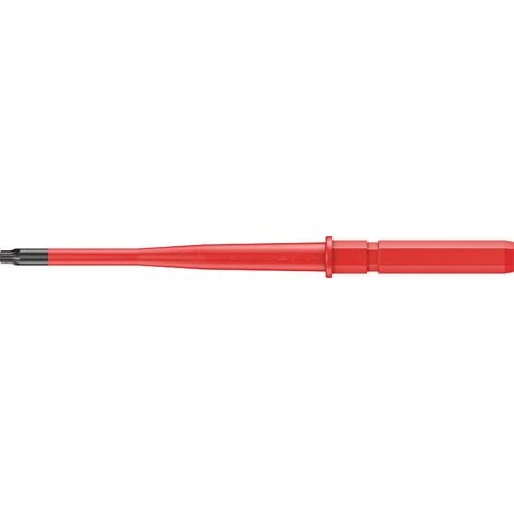 Wechselklinge mit reduziertem Klingendurchmesser mit integrierter Schutzisolation, so können tiefliegende Schraub- und Federelemente erreicht und betätigt werden. Stückgeprüfte Werkzeuge gem. IEC 60900. Stückprüfung im Wasserbad bei 10.000 V für sicheres Arbeiten bei der zugelassenen Spannung von 1.000 V.