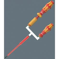 Mit reduziertem Klingendurchmesser und integrierter Schutzisolation, Tiefliegende PZ-Schrauben können so erreicht und betätigt werden, Isoliert, stückgeprüft gemäß IEC 60900, 9 mm Sechskant-Antrieb mit Einführschräge, Die Wera Black Point-Spitze bietet Passgenauigkeit und optimierten Korrosionsschutz, Wechselklinge mit reduziertem Klingendurchmesser mit integrierter Schutzisolation, so können tiefliegende Schraub- und Federelemente erreicht und betätigt werden. Stückgeprüfte Werkzeuge gem. IEC 60900. Stückprüfung bei 10.000 V für sicheres Arbeiten bei der zugelassenen Spannung von 1.000 V. Die Wera Black Point-Spitze bietet Passgenauigkeit und optimierten Korrosionsschutz.