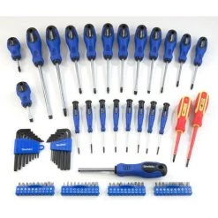 - 40 Bits 25 mm (Schlitz 3 / 4 / 5 / 5,5 / 6 / 6,5 / 7 / 8; Kreuzschlitz PH0 / PH1 /PH2 / PH3; Kreuzschlitz PZ0 /PZ1/ PZ2 / PZ3; Innensechskant H3 / H4 /H5/H6; Innenstern T6 / T8 / T10 / T15 / T20 / T25 / T27 / T30 /T35/ T40; Spanner 6; Dreiflügel 1 / 2 / 3; Vierflügel 6 / 8 / 10; Vielzahn 5 / 6 / 8