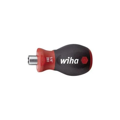 Abtrieb: Für Bits entsprechend DIN 3126, ISO 1173 Form C 6,3. · Anwendung: Besonders geeignet zum Arbeiten an engen Stellen. · Bitaufnahme: Aus rostfreiem Stahl, mit starkem Dauermagnet. · Extra: Mit Wiha KegelsenkerBits als Handentgrater einsetzbar. · Griff: Kurzer, ergonomischer Wiha SoftFinish® Mehrkomponentengriff mit Abrollschutz.