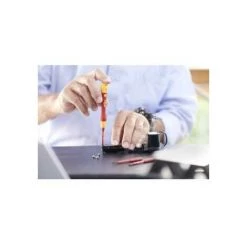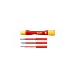 Steigert Ihre Effizienz: 100 % kompatibel mit dem Wiha slimBit System.Steigert Ihre Präzision: Gefühlvolles Arbeiten und kontrollierte Kraftübertragung dank schlankem Griff mit Softgrip-Zone.Steigert Ihre Präzision: Insbesondere geeignet in Verbindung mit kleinen slimBit-Profilen.Bietet Ihnen vollen Schutz: Jedes Werkzeug einzeln bei 10.000 V AC getestet und zugelassen für 1.000 V AC.Erhöht Ihre Sicherheit: Wiha slimBits gewährleisten einen guten und geschützten Zugang zu tief liegenden Schrauben.Anwendung: Ideal für feine und filigrane Schraubarbeiten in der Elektrik und an spannungsführenden Teilen, z.B. im Smart Home Bereich und an Telekommunikationsanlagen.Bithalter: Isolierter Bithalter aus Metall hält alle slimBits zuverlässig.Bithalter: Nur für 6 mm slimBits.Die Herausforderung bei filigranen Verschraubungen besteht darin, präzise und gefühlvoll zu arbeiten, ohne das Werkstück zu beschädigen. Die Feinschraubendreher PicoFinish von Wiha sind dank ihrer langen, schlanken Griffe und der Schnelldreh-Zone ideal für feine und filigrane Arbeiten im Elektrobereich. Das ergonomische Griffdesign mit Weichzone ermöglicht komfortables Arbeiten. Gefühlvolles und schnelles Drehen wird mit der leichtgängigen Drehkappe unterstützt. In Kombination mit den wechselbaren Wiha slimBits kann der Feinschraubendreher mit slimVario Aufnahme zudem für eine Vielzahl von unterschiedlichen Schraubprofilen eingesetzt werden. Im Set sind 3 slimBits enthalten. Der Feinschraubendreher mit seinen slimBits wird gemäß der internationalen Norm IEC 60900 einer Stückprüfung unterzogen und ermöglicht ein sicheres Arbeiten im Bereich von spannungsführenden Teilen bis 1.000 V AC.Geprüft gemäß IEC 60900.Inhalt:1x Feinschraubendreher PicoFinish slimVario electric1x Bit slimBit electric Schlitz 2,0 mm x 75 mm (43115)1x Bit slimBit electric Phillips PH0 x 75 mm (43116)1x Bit slimBit electric Pozidriv PZ0 x 75 mm (43117) | Eigenschaften: Gewicht: 67,1 g, Serie: 2831, VDE geprüft: Ja, Anzahl der Teile: 4, Abtriebsform: , VDE-geprüft: Ja, ESD-geprüft: Nein
