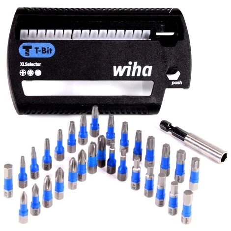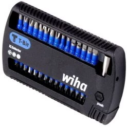 Bisher herrschte beim Bitkauf keine Klarheit, welche Bits für welche Anwendung passend sind. Wiha macht Schluss mit der Komplexität zwischen der verwendeten Maschine, dem Schraubfall und der großen Auswahl an unterschiedlichen Bits. Dank des revolutionären Bitkonzepts von Wiha ist lediglich die Schraubenform ausschlaggebend für die Auswahl des richtigen Bit. So eignet sich der T-Bit ideal für das Verschrauben von T-förmigen Schrauben mit 90° Winkel zwischen Gewinde und Schraubenkopf. Dank der patentierten, verlängerten Torsionszone ist der Bit auch für Impact- und Schlagschrauber geeignet und hat eine 120x höhere Lebensdauer im Vergleich zu den Wiha Standardbits. Zudem sind die farbigen Bits schnell und einfach auffindbar und dank des Farbmantels auch im Dunkeln mit UV-Licht gut zu finden. Somit kann die Anzahl verloren gegangener Bits gesenkt und die Kosten der Neubeschaffung eingespart werden. Die Bits sind in den gängigsten Abtrieben kompakt und platzsparend im XLSelector verstaut. Für das Verschrauben von Schrauben in T-Form geeignet. Auch für Impact- und Schlagschrauber geeignet.