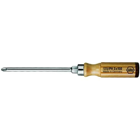 Kreuzschlitz-Schraubendreher aus glanzvernickeltem Chrom-Vanadium-Stahl mit Buchenholz-Griff.Maß: Länge Gesamt 18 cm, Klinge 8 cmpassend für Kreuzschlitz PH 1durchgehende Rundklinge mit Sechskantansatzgeeignet für alle Applikationen in der HolzverarbeitungGriffende durch Lederkappe geschütztnach DIN ISO 8764