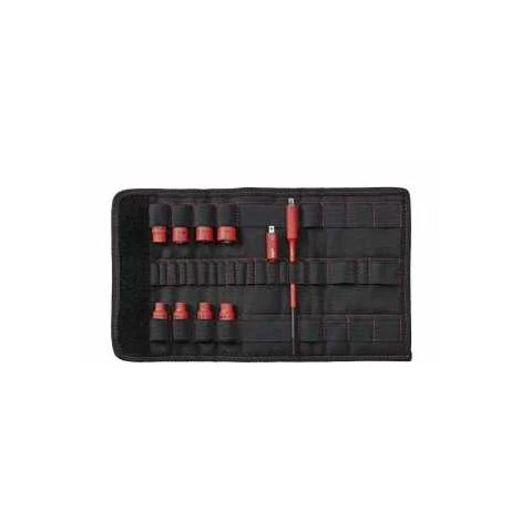 Vereinfacht Ihre Arbeit: Alle Werkzeuge sicher und geordnet in einer robusten und übersichtlichen Tasche untergebracht.Erhöht Ihre Flexibilität: Steckschlüsseleinsätze dank der beiliegenden Adapter mit speedE, slimVario und TorqueVario-S Werkzeugen nutzbar.Schützt Ihr Material: Vollisolierte Steckschlüssel reduzieren die Gefahr von Kurzschlüssen.Bietet Ihnen vollen Schutz: Jedes Werkzeug einzeln bei 10.000 V AC getestet und zugelassen für 1.000 V AC.Anwendung: Für Arbeiten im Bereich von spannungsführenden Teilen bis 1.000 V AC. Ideal für den mobilen Einsatz und im beengten Arbeitsumfeld.Bei Arbeiten an unterschiedlichen Einsatzorten wie z.B. an Schaltschränken und elektrischen Anlagen werden viele verschiedene Schraubprofile benötigt. Das 10-tlg. Set deckt mit seiner Auswahl an Steckschlüsseleinsätzen die gängigsten Verschraubungen ab und ist somit flexibel einsetzbar. In Kombination mit speedE, slimVario und TorqueVario Werkzeugen können die Steckschlüsseleinsätze für das Anziehen und Lösen von Sechskant-Schrauben verwendet werden. Sicher verstaut und geordnet in einer robusten Falttasche sind die Elektriker-Werkzeuge perfekt für den mobilen Einsatz geeignet. Zudem bietet die Tasche ausreichend Platz für weitere slimVario und TorqueVario-S Produkte. Gerade im beengten Arbeitsumfeld verhindern die vollisolierten Werkzeuge bei unabsichtlichem Kontaktieren zweier Leiter einen Kurzschluss. Jedes Werkzeug im Set wurde gemäß der internationalen Norm IEC 60900 einer Stückprüfung unterzogen und ermöglicht ein sicheres Arbeiten im Bereich von spannungsführenden Teilen bis 1.000 V AC.Inhalt:1x Adapter slimVario electric für 1/4 Steckschlüssel 6,0 mm (43139)1x Adapter TorqueVario-S electric für 1/4 Steckschlüssel (43128)1x Steckschlüsseleinsatz isoliert 1/4 Außensechskant 5,0 mm (43089)1x Steckschlüsseleinsatz isoliert 1/4 Außensechskant 5,5 mm (43090)1x Steckschlüsseleinsatz isoliert 1/4 Außensechskant 6,0 mm (43091)1x Steckschlüsseleinsatz isoliert 1/4 Außensechskant 7,0 mm (43092)1x Steckschlüsseleinsatz isoliert 1/4 Außensechskant 8,0 mm (43093)1x Steckschlüsseleinsatz isoliert 1/4 Außensechskant 10,0 mm (43095)1x Steckschlüsseleinsatz isoliert 1/4 Außensechskant 11,0 mm (43096)1x Steckschlüsseleinsatz isoliert 1/4 Außensechskant 13,0 mm (43098)1x Falttasche | Eigenschaften: Gewicht: 419 g, Serie: 7209N, VDE geprüft: Ja, Anzahl der Teile: 10, Ausführung: Stecknuss, VDE-geprüft: Ja, Abtriebsform: Außensechskant, Antriebsvierkant: 1/4, Antriebsform: Vierkant