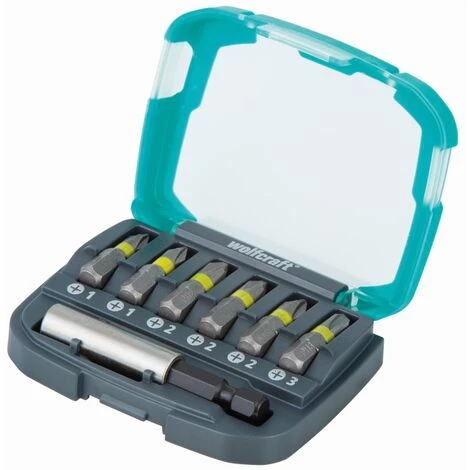 Das Wolfcraft Bit-Set Phillips beinhaltet folgende Bits: 2 x PH1/3 x PH2 , 1 x PH3inkl. 1 magnetischer BithalterLänge: 25 mmmit Farbcode für Antriebgute Haptik – Deckel aus 2-KomponentenKennzeichnung der Box mit Bit-Antrieb und Bit-Größeeinfache Bitentnahme -extra sicherer Halt in der Boxklein und handlich